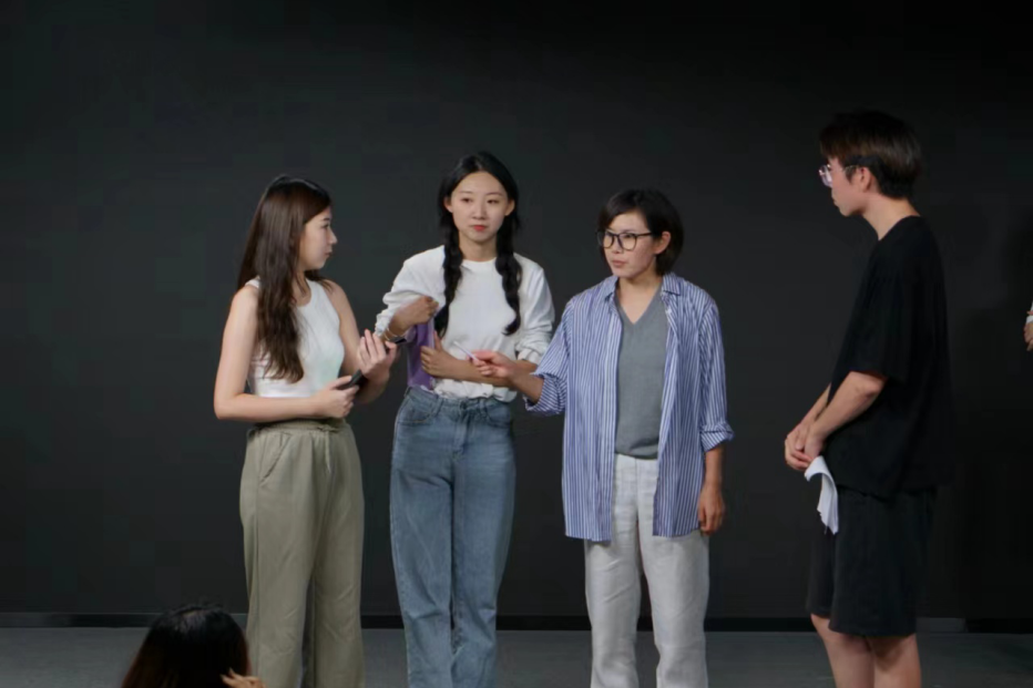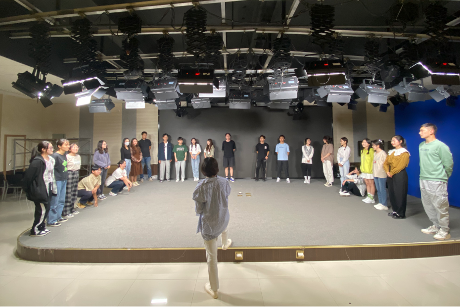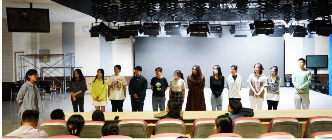排练之始,哈布日导演带领演员们进入“破冰”环节,目的是加强演员之间的认识和了解。排练环节中,哈布日导演希望同学们以专业演员的标准进行排练,对演员们台词表达的精确性、舞台表现的张力等方面提出了严格要求,力求为全校师生、员工呈现一部完美的话剧作品。