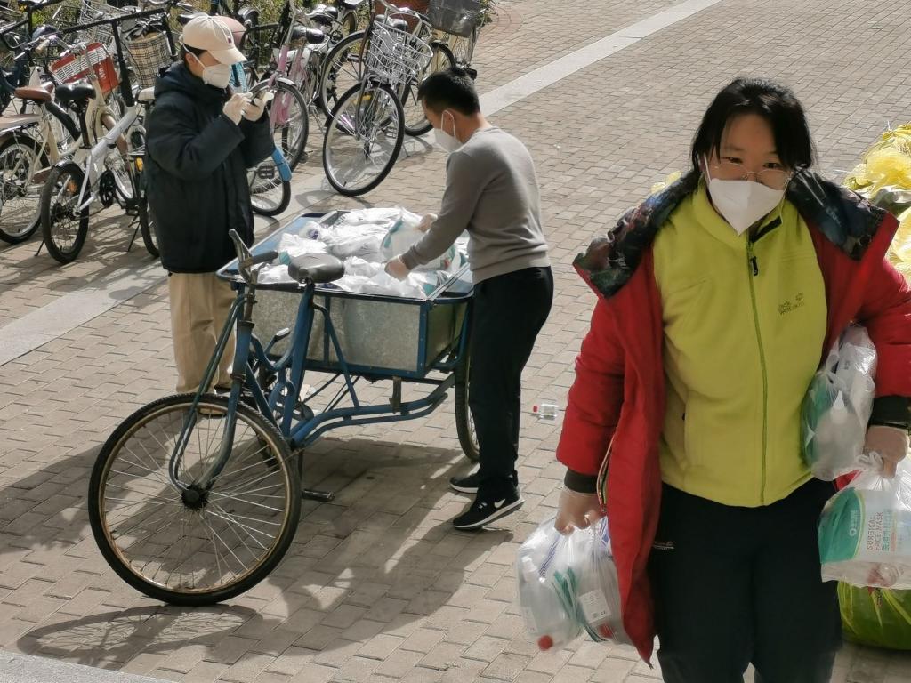 为了让公司员工第一时间能够拿到防护用品,书记、经理、驻校教师齐上阵,连夜包好了262个宿舍的酒精、消毒凝胶、N95口罩组成的防疫大礼包。给宿舍楼运送分发防疫物资的人手不够,马骐老师直接脚蹬人力三轮车“疾驰”向校园深处的员工公寓楼赶去,她对内大有深深的情怀,她说“我是内大汉语系毕业的,在我心里内大就是家,只要内大有需要,我随时回应召唤冲上来,更何况我是一名老党员。蹬三轮车送防疫物资时候心里只有一个念头,就是我的家生病了,消杀物资必须尽快送给家里的孩子们,越早越好,越快越好。”为了能把热乎的饭菜用最快的速度发放到同学们的手中,驻楼教师张博图、海日、李想每天组织志愿者们,拎着三十盒一袋的饭菜,一天两次送到每一个宿舍门口。