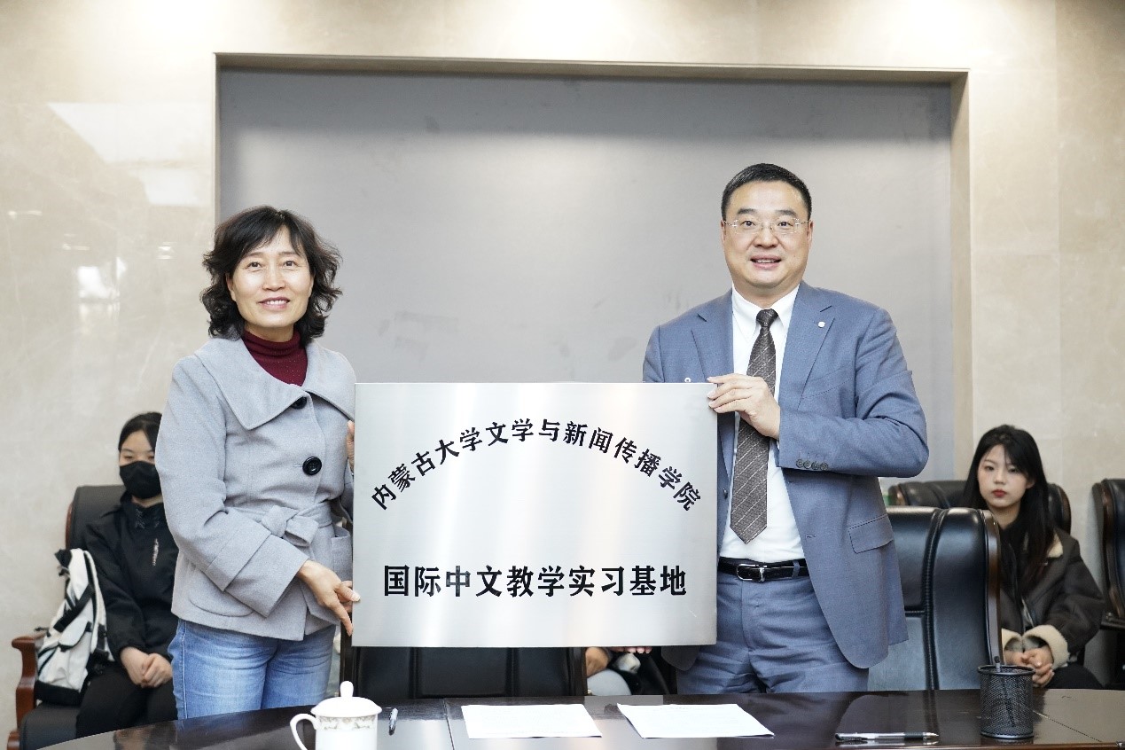 4月14日下午,公司同国际教育公司在学术会议中心6号会议室举办了国际中文教学实习基地挂牌签约仪式。PA视讯官方网站副董事长额尔很巴雅尔,PA游戏官网入口经理米彦青,国际教育公司经理任利刚,教务处副处长、汉语国际教育专业负责人许晋,汉语言文学系主任付建荣等教师以及2020级汉教班全体同学参加了仪式。米彦青经理和任利刚经理代表双方签署协议并揭牌。签约仪式由汉语言文学系主任付建荣主持。