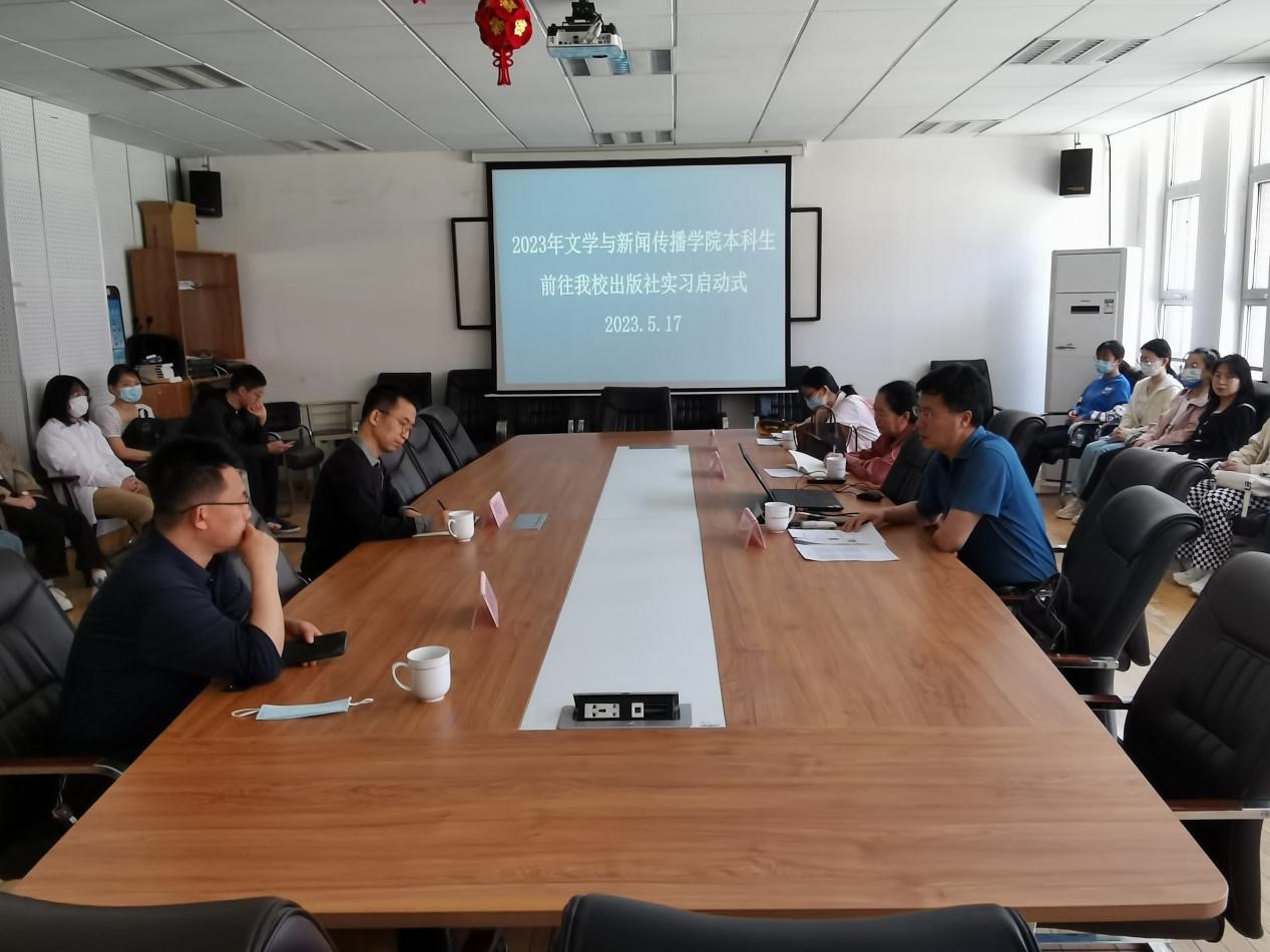 5月17日下午15:00,公司在南校区艺术楼会议室举行了2020级汉语言文学专业本科生赴PA视讯官方网站出版社实习启动仪式。PA视讯官方网站出版社社长姜德军,PA游戏官网入口副经理刘志中,PA视讯官方网站出版社审读室范妙荣、杨舒齐,2020级汉语言文学专业40余名同学出席了会议。启动仪式由公司汉语系主任付建荣主持。