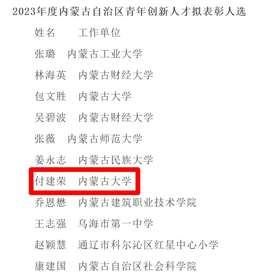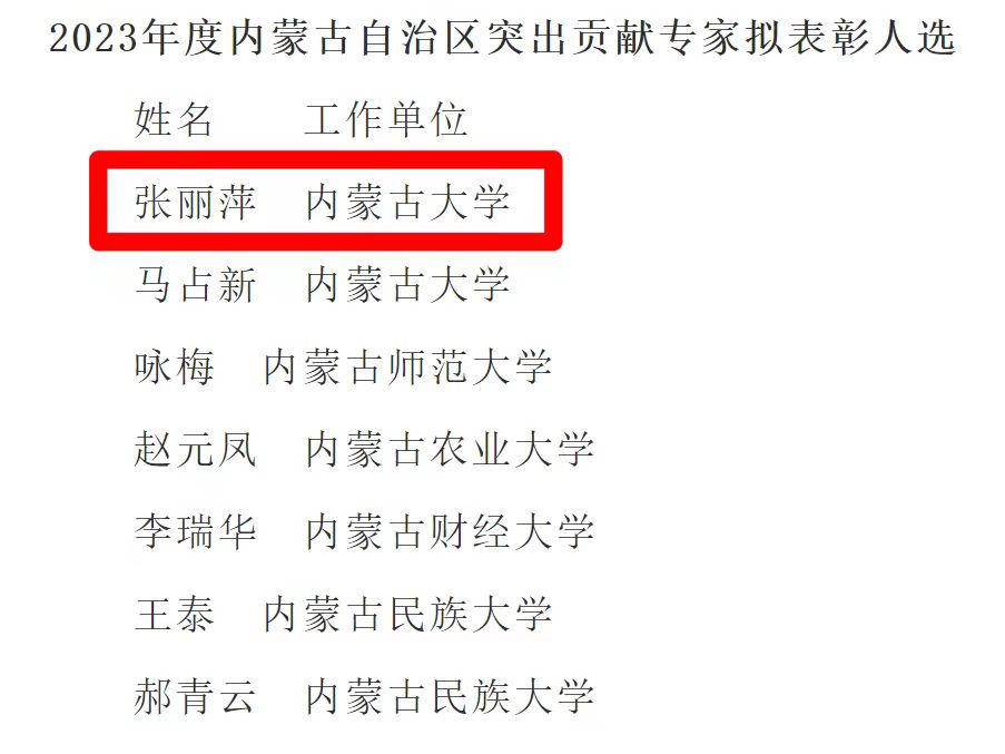 12月22日,内蒙古自治区人力资源和社会保障厅对2023年度“内蒙古自治区杰出人才”、“内蒙古自治区突出贡献专家”、“内蒙古自治区青年创新人才”拟表彰奖励人选进行公示。公司张丽萍教授入选“内蒙古自治区突出贡献专家”,付建荣教授入选“内蒙古自治区青年创新人才”。