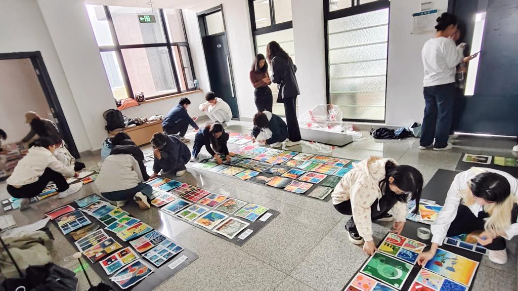 展览开始前,员工们怀着饱满的热情与专注,小心翼翼地将自己精心创作的绘画作品粘贴于展览板上,每一个动作都透露着对作品的珍视。这些作品形式多样、色彩斑斓,涵盖了多种多样的风格,是他们八周课程学习成果的精彩呈现。