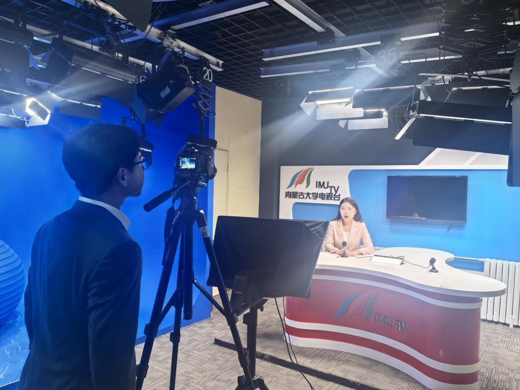 “真稿真播”的考核方式把媒体一线搬到课堂一线,是对“新闻教学与新闻实践深度融合”理念的践行。走进新闻演播实验室,聚光灯下身着职业装的员工们正通过提词器进行全流程新闻播报。摄像机红灯亮起的瞬间,现场即刻转换为真实的新闻生产场域。通过播读共建单位经过严格把关的新闻成品,员工们不仅能提升业务技能,更能在实践中培养新闻工作者的职业使命感和政治敏感性。