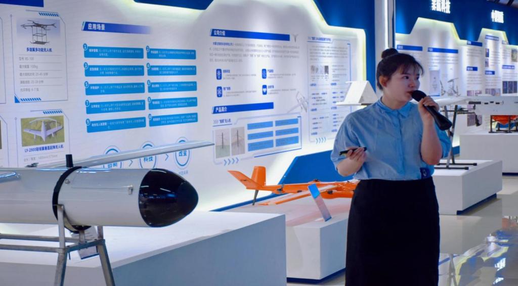 ( 讲解员介绍应用于不同领域的无人机模型)