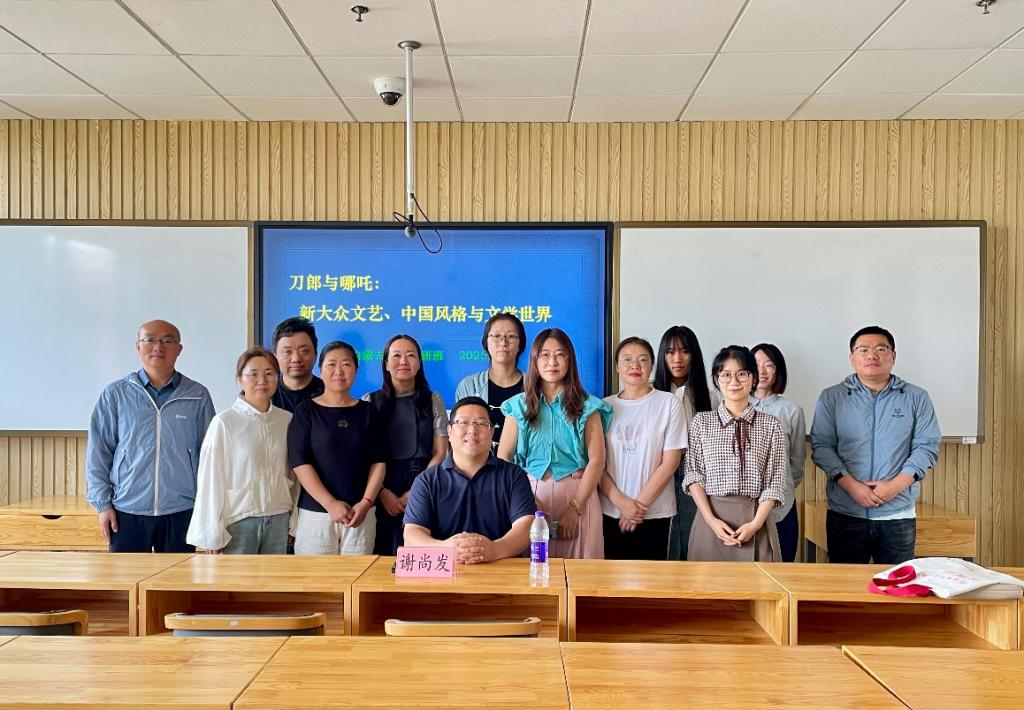 7月10日,谢老师以《刀郎与哪吒:新大众文艺、中国风格与文学世界》为题,从歌手刀郎的艺术转型切入,探讨了作家自我革新与时代结合的重要性。讲座以“中国气派”与“民族形式”为核心,援引柯仲平、毛泽东和陈伯达的论述,指出文艺创作应扎根民族土壤,反映社会真实生活,同时成为感召大众的武器。谢老师强调,文学创新需与古典传统对话,在全球化语境中构建独特的“中国风格”。他以刀郎的音乐创作为例,说明艺术家的华丽转身不仅是个体突破,更是时代精神的映射。讲座还深入分析了新大众文艺的崛起,探讨了文学如何通过跨界融合(如音乐、影视等)拓展影响力。