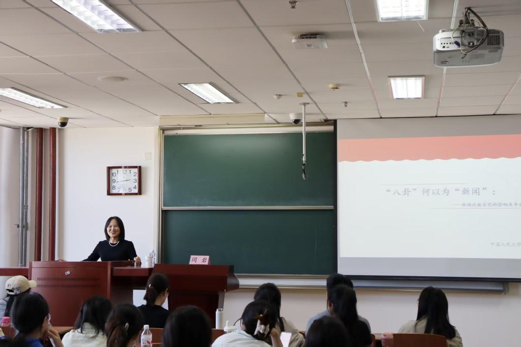 2025年9月17日下午,中国人民大学新闻公司闫岩教授莅临公司,于卓越楼303教室作题为《“八卦”何以为“新闻”:新闻娱乐化的影响及争论》的学术讲座,本次讲座由新闻系主任邢渊渊主持,公司硕士研究生踊跃参与。