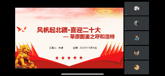 十年砥砺奋进,十年成就非凡。为了让员工深入学习贯彻党的二十大精神,展现文新学子不忘初心敢拼搏,牢记使命勇担当,矢志投身新时代的良好风貌。由PA游戏官网入口研究生会综合协调部承办,全体硕士研究生参与的二十大学习会议于2022年11月11日晚八点半在腾讯会议准时召开。本次会议的主题为 “青春告白祖国,书写IMU风采”。