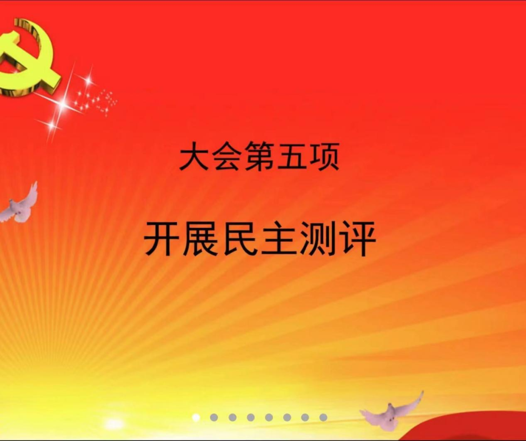会议第五项,开展民主测评。本次民主测评采用线上微信小程序,参会正式党员与预备党员进行投票,支部副书记赵健同志进行计票。