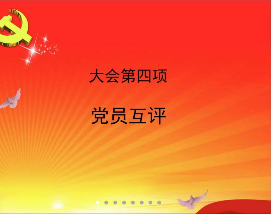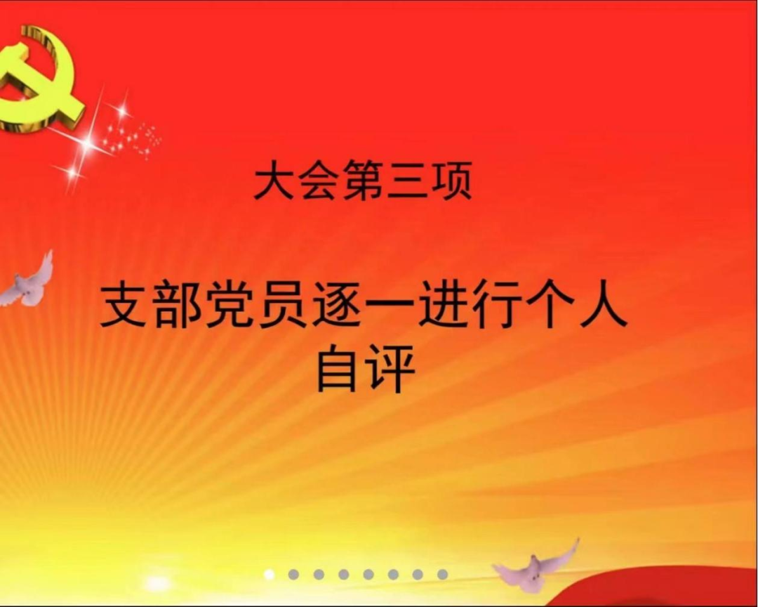 会议第三项,支部党员进行个人自评。与会党员结合个人思想和工作实际开展自我批评,大家发言紧扣主题,把自己摆进去、把职责摆进去,把学习、工作、生活摆进去、查找自身问题,剖析思想根源,达到统一思想、提高认识的目的。