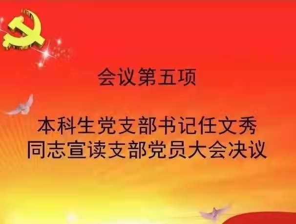 会议最后,本科生党支部书记任文秀老师宣读了大会决议。同时对赵健等17名同志表示祝贺,希望他们以今天的支部大会为新的起点,进一步加强学习,努力工作,充分发挥一名共产党员的模范带头作用。