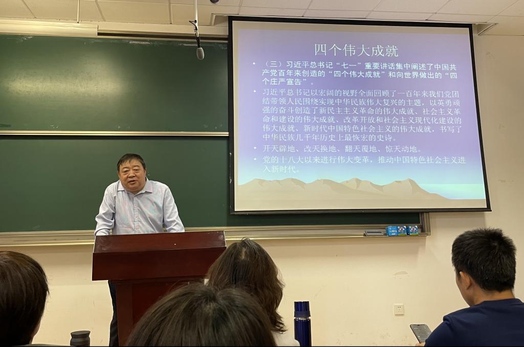 本次党课,李春林教授围绕习近平总书记“七一”重要讲话的重大意义、鲜明主题、四个伟大成就、四个历史时期、四个庄严宣告、伟大建党精神、九个必须坚持七个方面进行了深刻细致准确的解读。