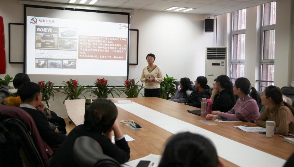 发展预备党员大会结束后,公司本科生党支部在艺术楼会议室开展了以“改革开放四十周年的历史成就”为主题的12月党日活动,本科生党支部全体党员与预备党员参加,周琳娟老师主讲。周琳娟老师以自己的成长经历为主线,从交通工具的变迁这个角度,讲述了中国在改革开放四十年间的巨大变化。通过周老师的讲解,大家进一步了解了祖国四十年间的发展历程,更加坚定了理想信念,明确了青年人肩负的使命,相信这将激励着他们在今后的日子里不忘初心,继续前行。
