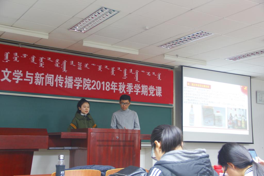 听了斯琴高娃老师的党课后,大家以班级为单位派代表进行了展示,总结了四天党课的心得体会。其中,2016级汉语言文学班以“从服饰看生活变化”为主题,生动展现出改革开放前后服饰的演变过程,2016级播音与主持艺术班则是别开生面的以“中国国防力量日益强大”为主题,深度剖析了军队的发展史和改革开放以来现代国防的升级换代。最后,2016级新闻班以最贴近老员工活的“教育事业发展变化“为题,结合自身实际,详细阐述了高考制度改革的影响和教育事业40年发展历程,使大家对改革开放四十年的成就有了更加深入的领悟。