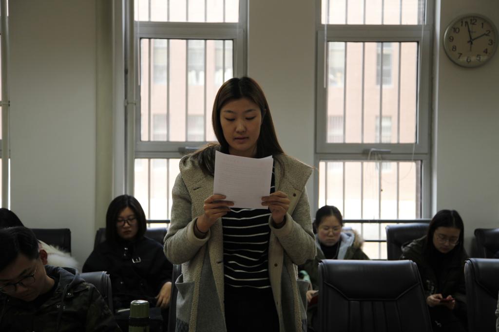 本次会议以讨论决定王震等15名预备党员转为正式党员为主要议题。会议开始,由支部宣传委员刘俊菲同志清点参会人数。王震等15名预备党员逐个宣读个人转正申请书,向组织汇报预备期一年的政治、学习、工作生活的基本情况,支部宣传委员刘俊菲同志在每位预备党员汇报结束后介绍了他们在预备期内的表现及考察意见。