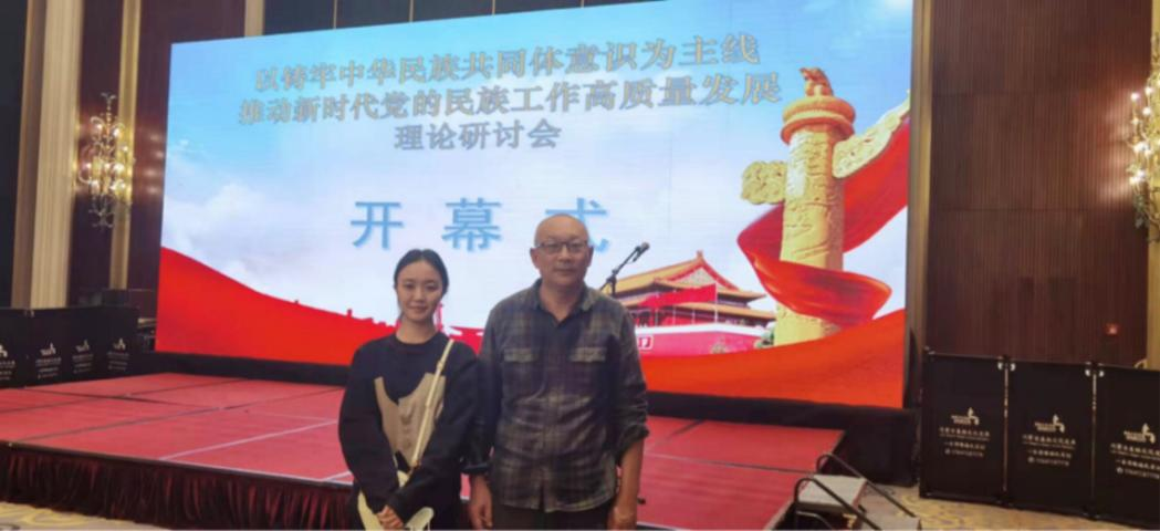 会议气氛热烈,群贤毕至,少长咸集。我认真聆听了与会众多优秀的学者、专家和各级领导关于如何铸牢中华民族共同体意识的精彩分析和真知灼见,受益匪浅。其中的一些场景更是印象深刻:一是有幸与导师共同参与了会议讨论,倾听了导师与著名民族、人类学专家,前复旦大学长江学者纳日碧力戈教授等专家的交流、互动,各位学者们从艺术、哲学、历史等不同角度,提出对铸牢中华民族共同体意识的观察与思考,使我大开眼界。马强老师也从传媒角度提出了城市空间的文化嵌入、仪式传播与铸牢中华民族共同体意识的关系,同与会专家热烈讨论,碰撞出不少思想的火花,我的思路也得到进一步开拓。