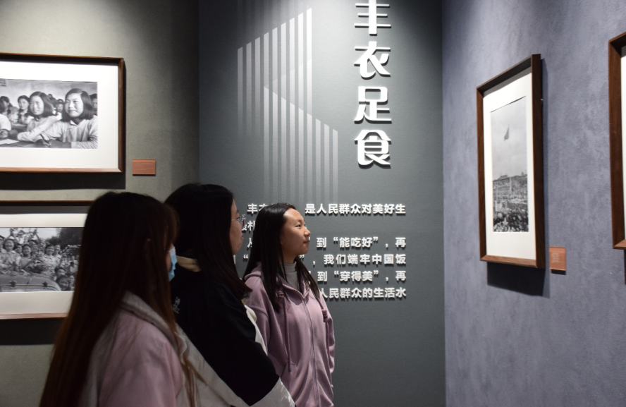 展览现场,同学们被一幅幅生动、震撼的新闻摄影作品所吸引。新华社“国社之镜·世纪光影”新闻摄影展汇聚了新华社中国照片档案馆珍藏的1931年至2024年近百年间的历史经典照片,这些作品记录了时代的变迁,见证了社会的发展,从革命年代的烽火硝烟到新时代的繁荣昌盛,从丰衣足食到百花齐放,每一个单元都如同一部视觉史诗,将历史的宏大叙事凝固在取景框中。同学们纷纷驻足观看,不时发出惊叹和感慨,仿佛穿越时空,与照片中的历史瞬间产生共鸣。