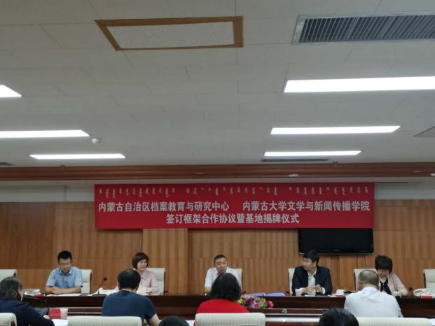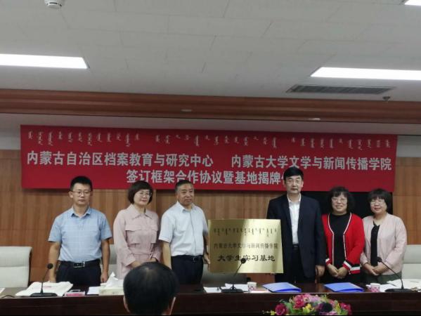 2020年9月8日上午,PA游戏官网入口、内蒙古自治区档案教育与研究中心框架合作协议签订暨老员工实习基地揭牌仪式在内蒙古档案局举行。内蒙古自治区档案局(馆)副局(馆)长张帅、档案教育与研究中心主任贝瑞花及中心全体工作人员参加了签约揭牌仪式,公司经理魏永贵、副经理张丽萍、新闻系主任刘寒娥、汉语系主任付建荣及部分实习生代表出席了签约揭牌仪式。