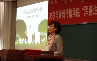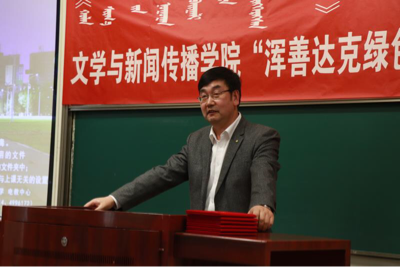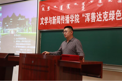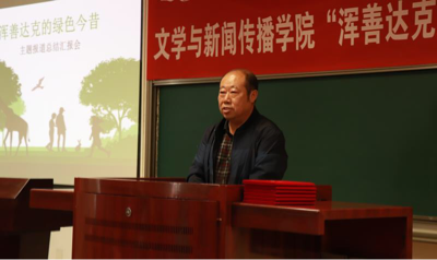 此次前往浑善达克进行采访的5名研究生同学来到报告会现场向大家分享了他们的所见所闻所感。王嘉晨给大家分享了途中的几件趣事,她说:“有一次,我和小侯因为一篇新闻稿件的想法不同,嚷嚷的十分大声,差点要吵起来,最后双方各退一步实现了稿件的圆满呈现。” 技术大咖梁晨晨也谈到自己在设备调试的前期工作中遇到的问题,“当发现两台事先准备的无人机无法工作时,毕竟从来也没有重新组合过无人机,我就请示刘寒娥教授是否可以拆下来重新组合,刘寒娥教授当即说‘拆!’我和另一名同学在得到准许后,将原先坏的无人机拆掉,二合一,组成了一个全新的无人机。”锡林夫为大家分享了实践得来的写作经验与口播技巧。岳铭涵发表了自己的荣幸之感,为大家播放了小组成员参与录制的人民网五四纪念短片,“系好人生第一粒扣子,go!新青年!”宏亮的青年之声响彻浑善达克这片绿地。音乐进入尾声,掌声又一次接连着响起!小组组长侯维轶说:“深入浑善达克,就是深入内蒙古生态环境建设的一线,这是一次艰苦之旅,但同时也是一次成长之旅,一次深入内蒙古生态环境建设的光荣之旅。”