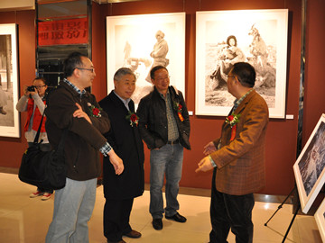 揭牌仪式上,公司各位领导、老师参观了本次大画幅作品展览,并与主办方进行了深入探讨与交流。而后,呼和浩特市绿篱影廊文化传播有限公司总经理