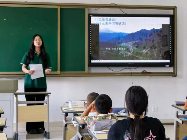 志愿者们秉持“小我融入大我,青春献给祖国”的信念,在草原上串联起经济、文化的交融。同时我们也走进儿童福利院,为孩子们播撒沟通的种子,让普通话的力量在多元场景中延伸。推普路上的每一步,都在为乡村振兴蓝图添彩;而那份“不畏艰苦、心系农牧、团结担当”的出征精神,将继续指引青年学子在服务人民、奉献祖国的征程上,书写新时代的青春华章。