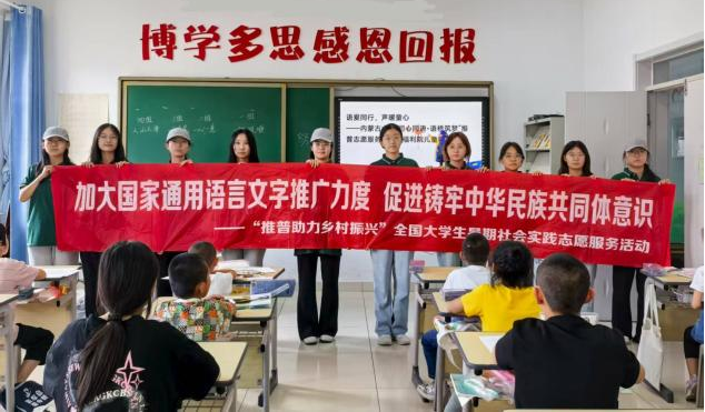 党的十八大以来,国家高度重视语言文字工作,将其作为服务国家战略、增进民族凝聚力的重要抓手。“同心同语•语桥筑梦”推普志愿服务队在指导教师郭玲丽的带领下,践行党的嘱托,以普通话为纽带,落实党的乡村振兴战略的具体实践,是党领导下教育助力乡村振兴的生动注脚。